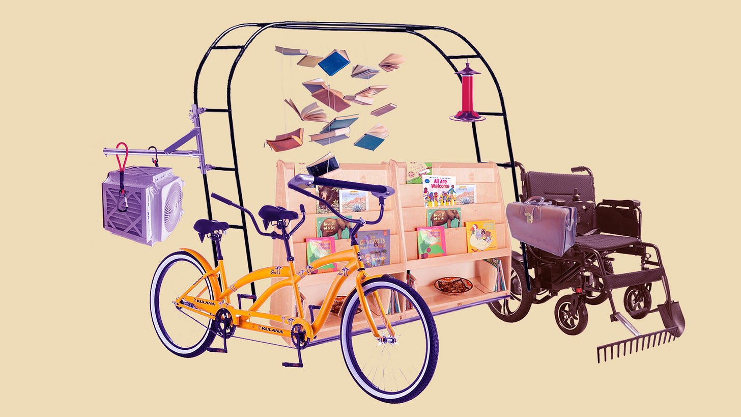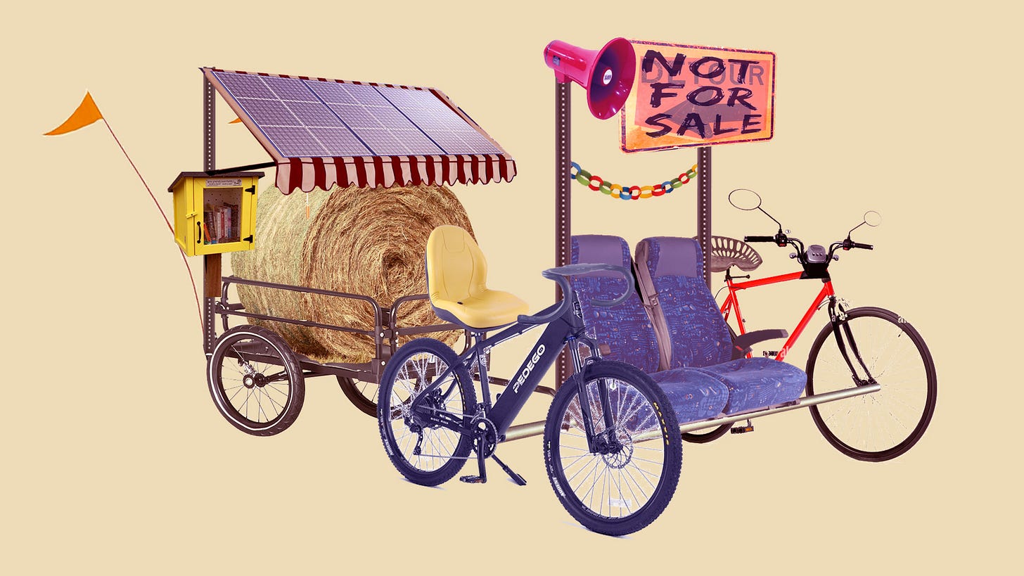 Repair cafes, bike shares, landing libraries, and the art mobile. Building rural whirlymobiles to connect rural artists.
